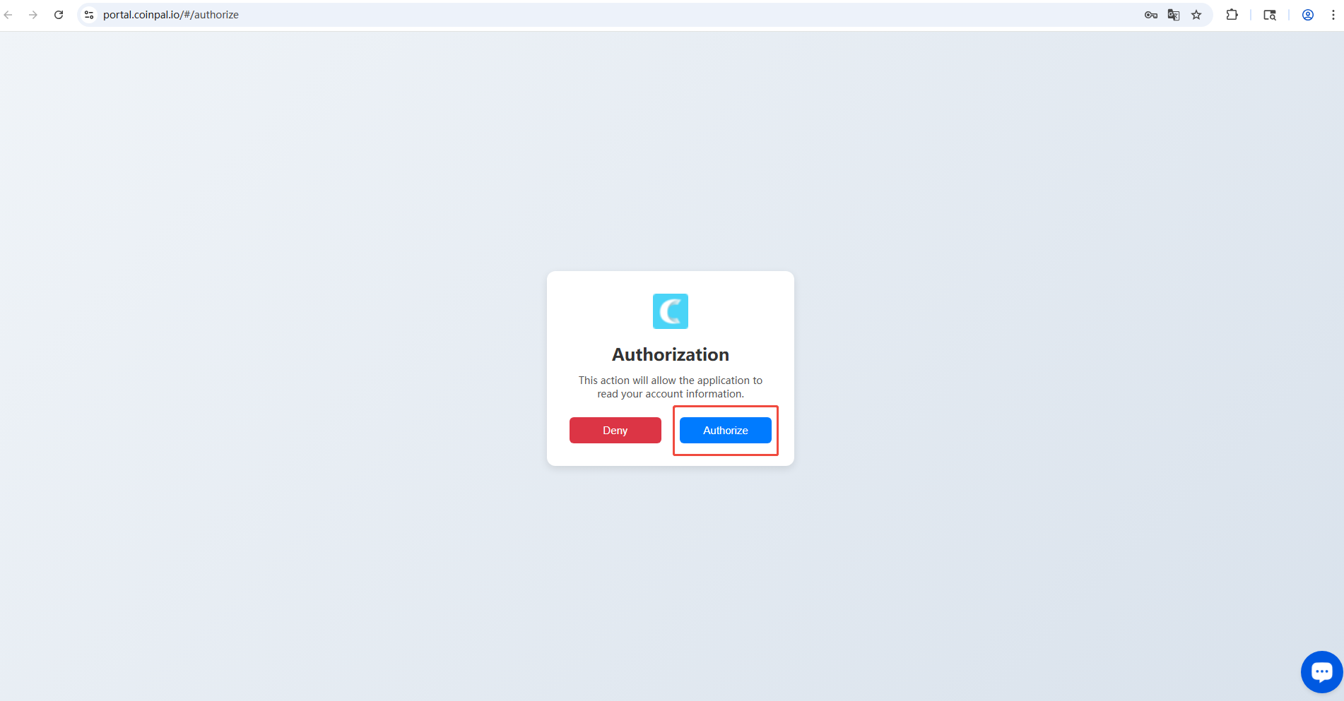 In the popup window, click "Authorize" to link your Coinpal account.